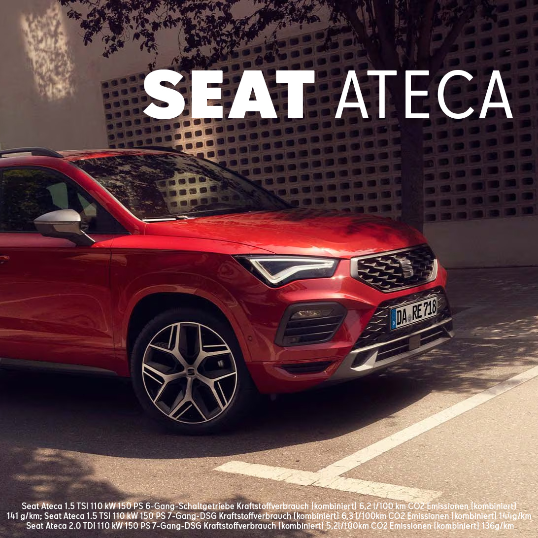 Erleben Sie den SEAT Ateca: ein SUV, das Funktionalität, Technologie und elegantes Design kombiniert. Hochwertige Materialien, intuitive Infotainment-Systeme und großzügiger Innenraum machen jede Fahrt zum Erlebnis. SEAT Ateca – ideal für Familien, Pendler und Abenteuerlustige.